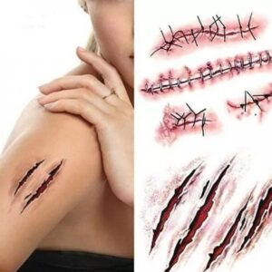 Halloween horror scar tattoo set fake temporary tattoo Halloween scar pack scratch marks vampire claw marks fake tattoos Halloween funny scare scars cat claws werewolves claw marks fake blood scab stickers